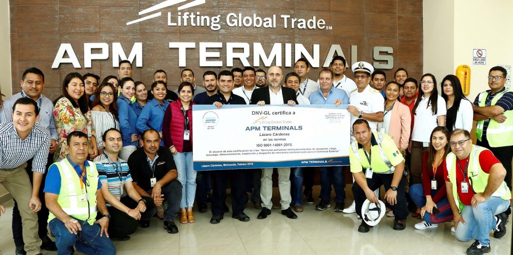 Lázaro Cárdenas, Mich.- APM Terminals, anunció que concluyó su certificación para el desarrollo de la implementación de un sistema de gestión integral de calidad y ambiental basado en la norma ISO 9001-14001, cuyo alcance la posiciona como empresa que cumple con los estándares de carácter internacional.