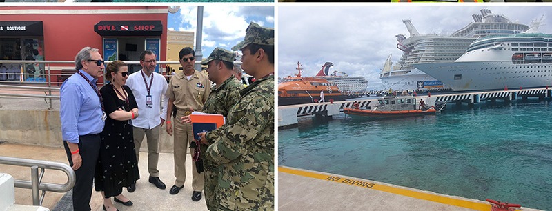 En cooperación con la OMI, en Cozumel (México), del 27 al 30 de mayo pasado, en la terminal de cruceros de Cozumel. Los participantes en los simulacros y el taller incluyeron a los oficiales de protección de las instalaciones portuarias de la terminal de cruceros, a los oficiales de seguridad de la nave, a la marina y al escuadrón de desactivación de bombas, entre otros.