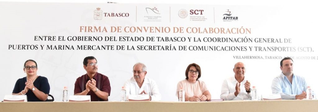 Ciudad de México.- Para fortalecer y detonar el sistema portuario marítimo de Tabasco, que coadyuve al desarrollo económico integral de la región, el Gobierno de Tabasco suscribió un convenio de colaboración con la Coordinación General de Puertos y Marina Mercante de la Secretaría de Comunicación y Transporte (SCT).