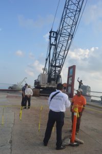 “El pavimento del Paseo de las Escolleras tiene perforaciones para que fluyan las aguas entre el río y el mar, cuando pase la grúa eso se va hundir, esa grúa pesa 90 toneladas”, explicó el hombre de mar.