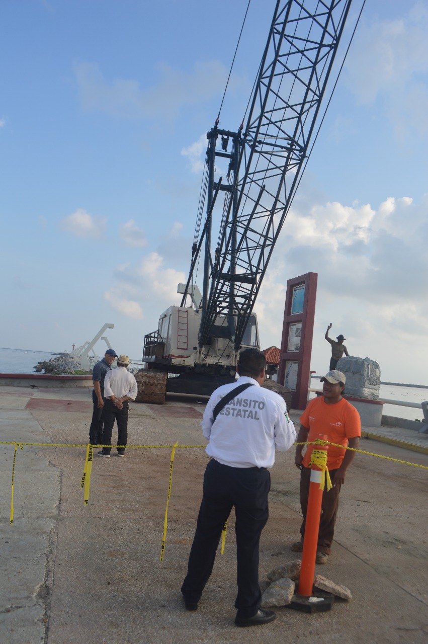 El pescador Domingo Gutiérrez expresó, “No se imaginaron que el ancho de las escolleras es limitado, tiene 6.5 metros y la grúa 6.80 metros de ancho, era una operación matemática sencilla, ahora no sabemos cómo vaya a ingresar”, denunció.