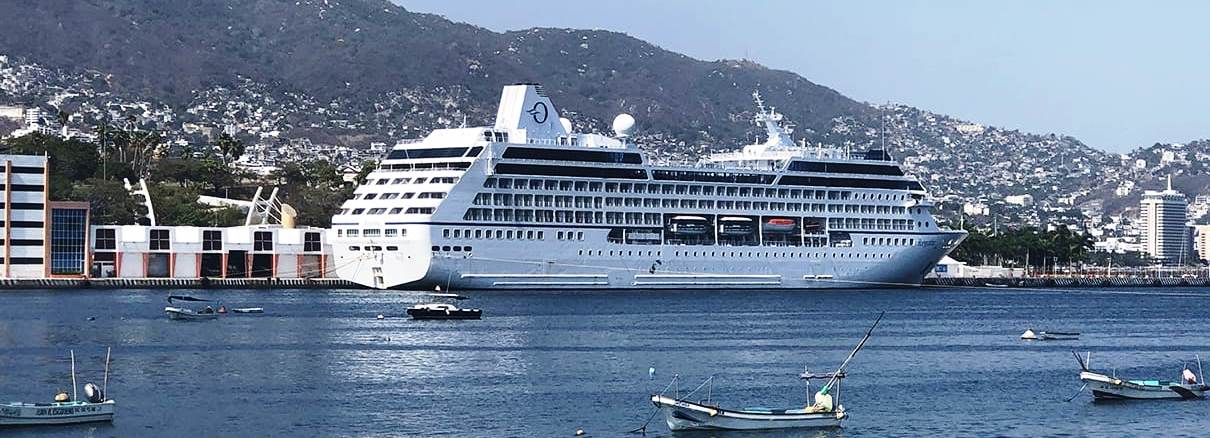 Acapulco, Guerrero.- El crucero Regatta de la compañía Oceania Cruises empresa filial de Norwegian Cruise Line Holding, inició una escala de 30 días en el puerto de Acapulco, con tripulación al mínimo y sin pasajeros, tras la autorización de la API y de las terminales especializadas.