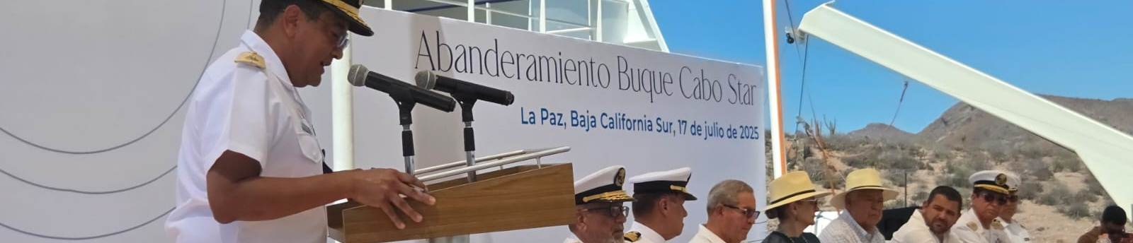 Ciudad de México. – La Unidad de Capitanías de Puerto y Asuntos Marítimos (UNICAPAM), en representación de la Secretaría de Marina como Autoridad Marítima Nacional, informó que realizó la ceremonia de abanderamiento del buque “Cabo Star”, la cual se llevó a cabo en el puerto de Pichilingue, Baja California Sur.